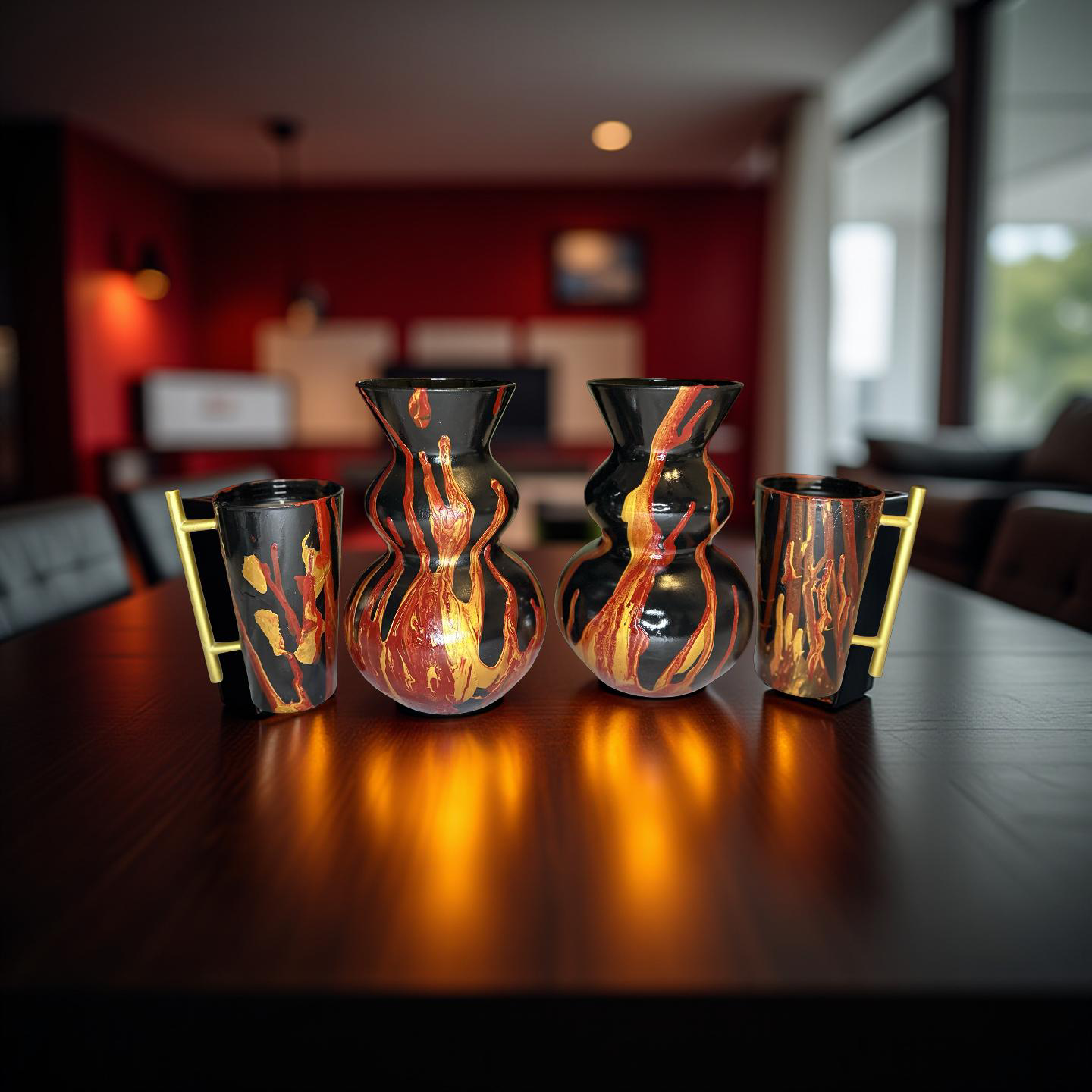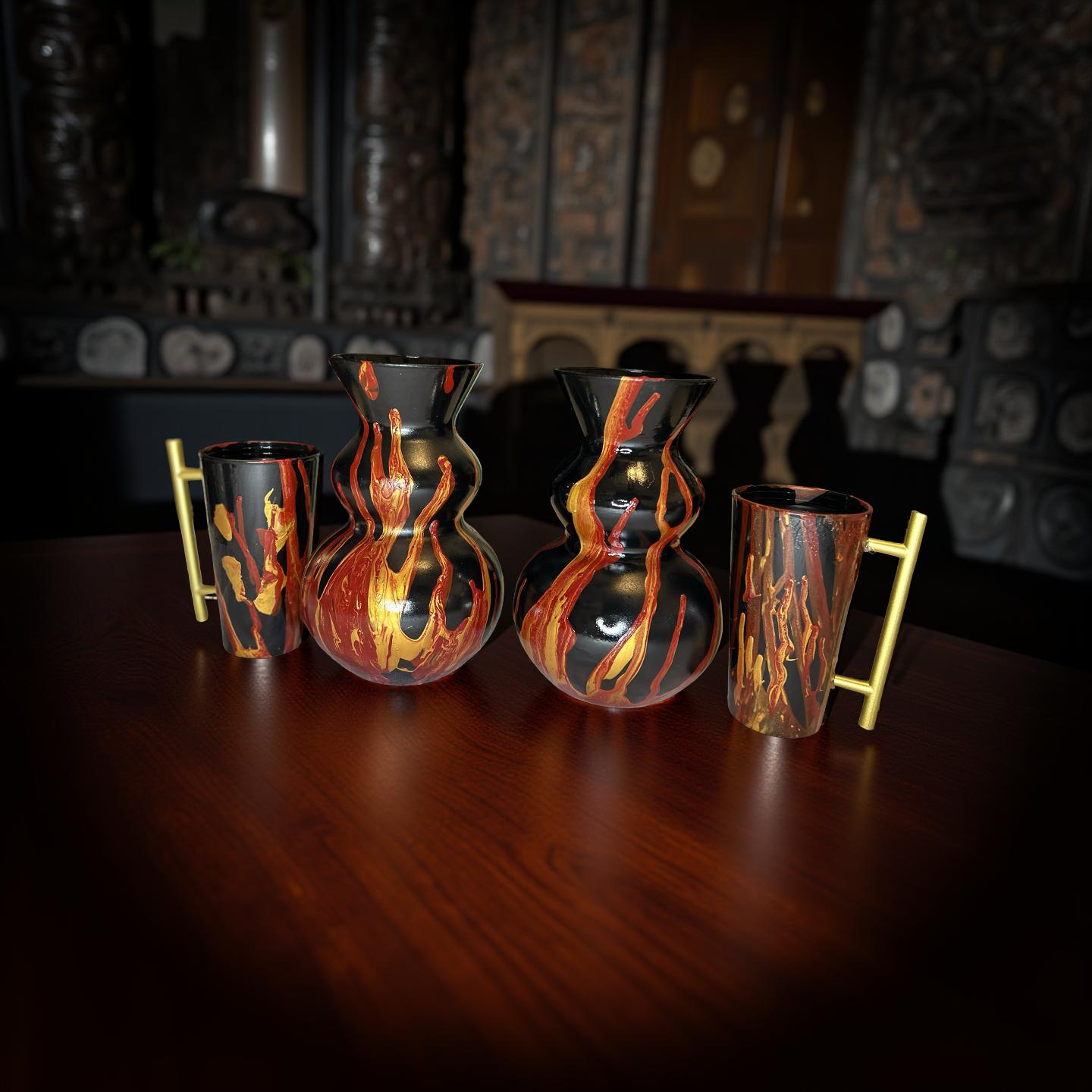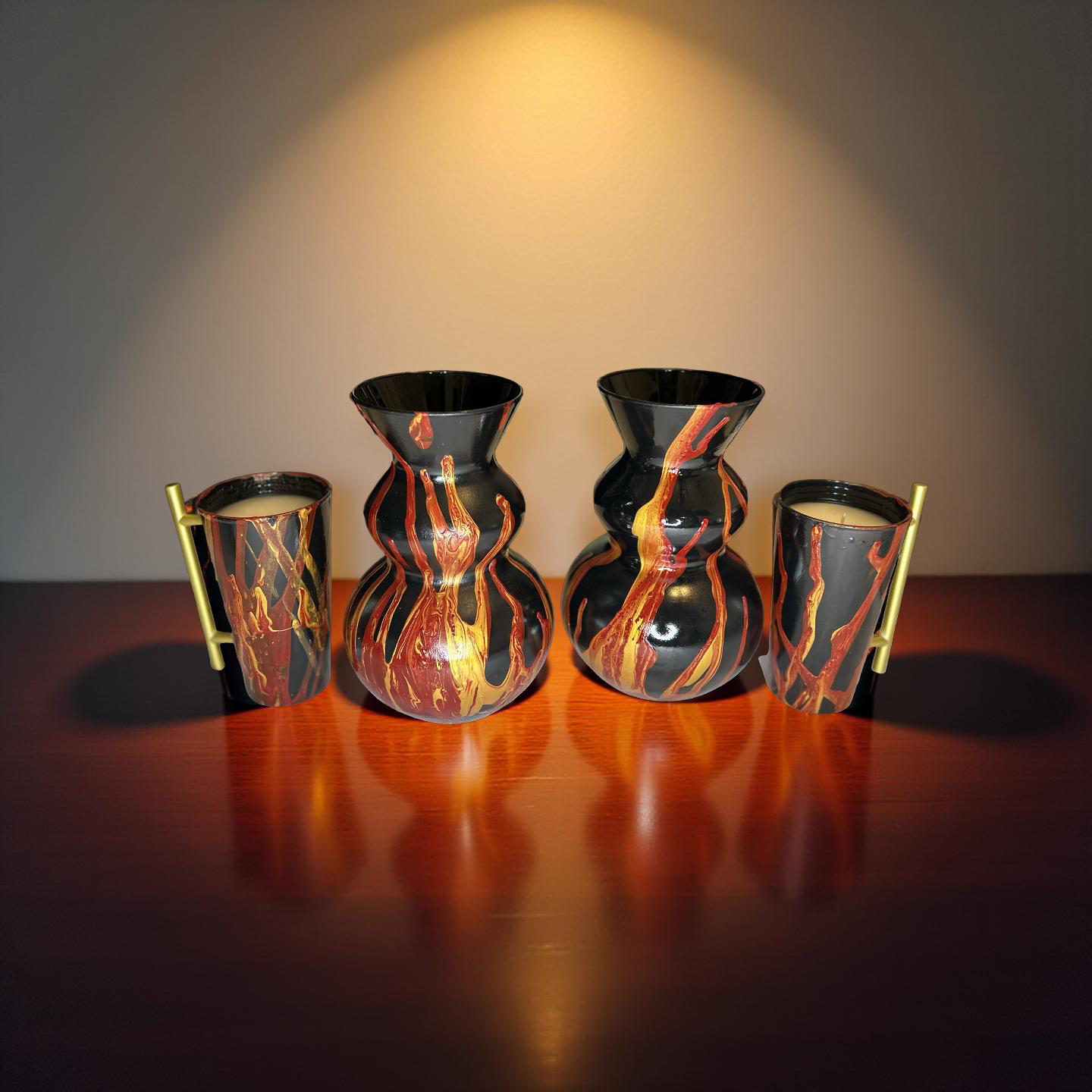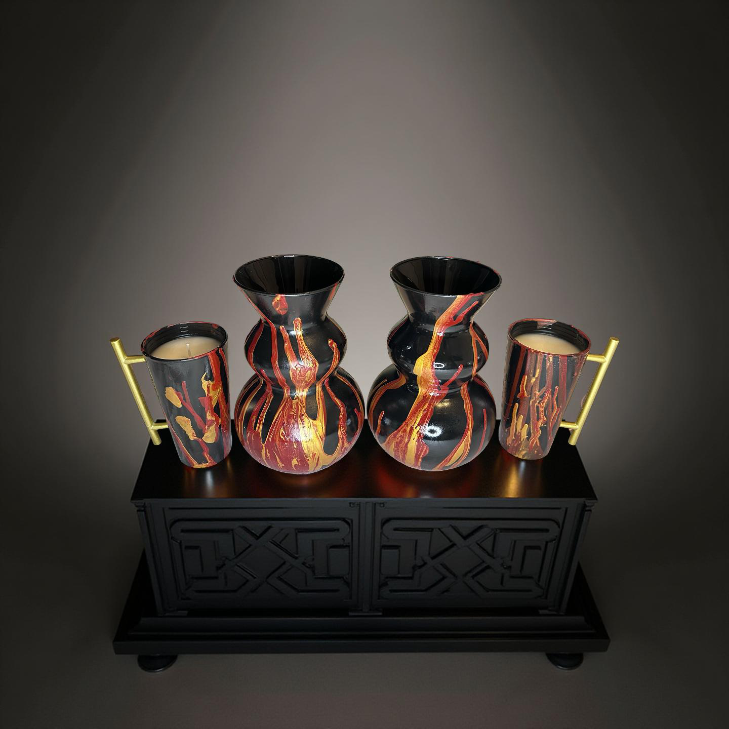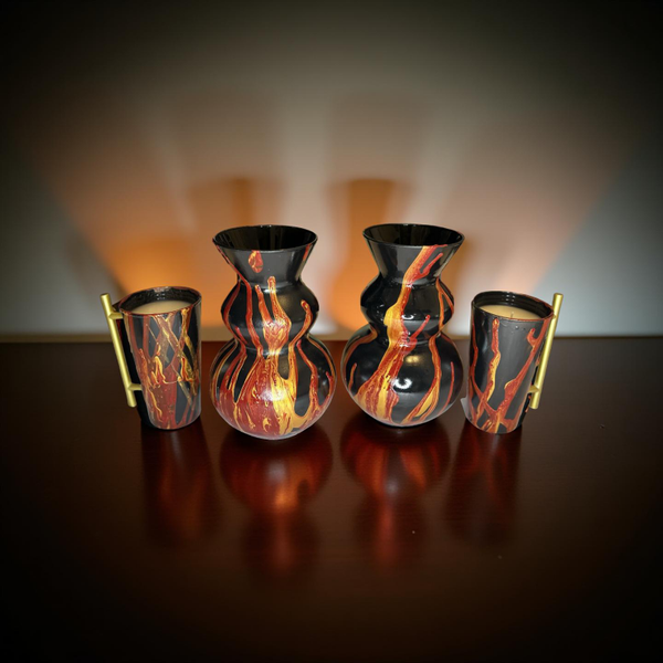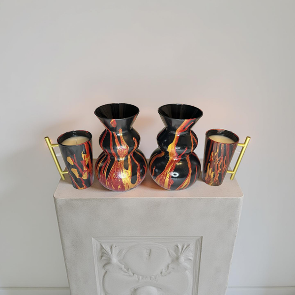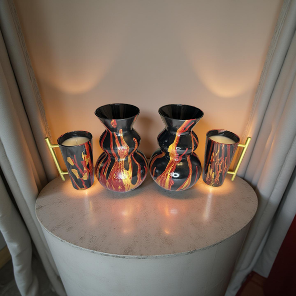 Fire Flames Vase Candle Set Black