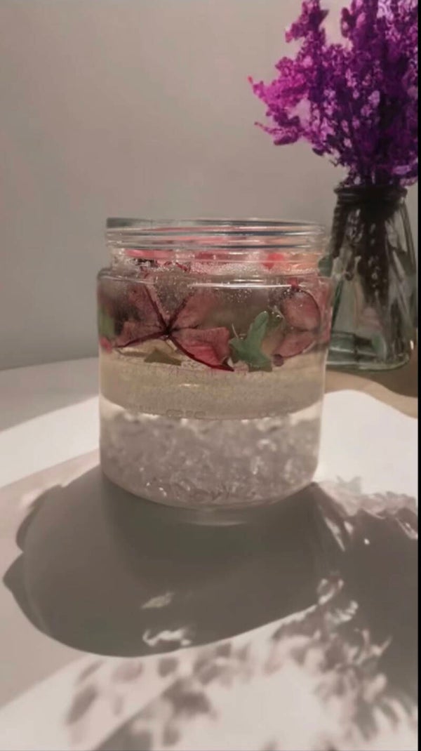 Diamond Water Candle has two layers and hold some weight . The first layer is water with diamonds. The second layer is gel wax with porporri. This candle smells amazing without being burned . This candle also comes in keepsakes . The aroma is a Sweet tropical coconut .