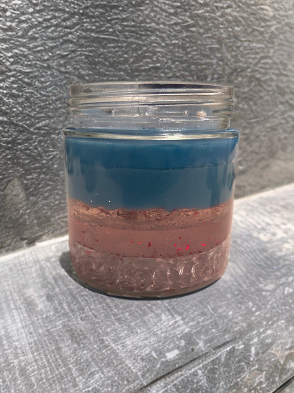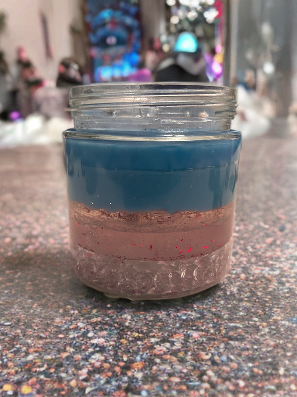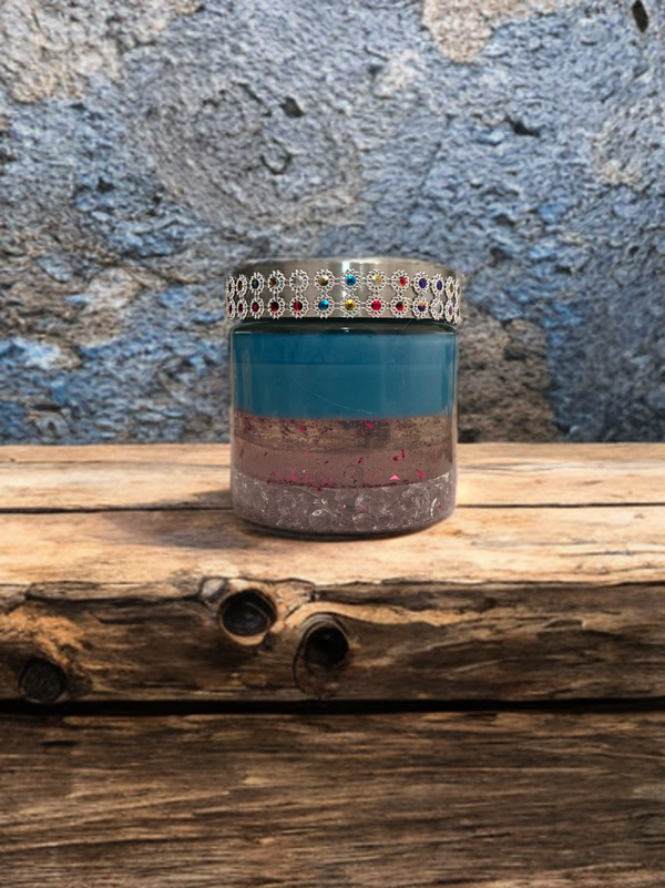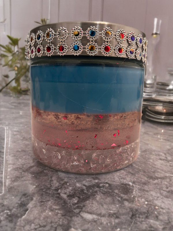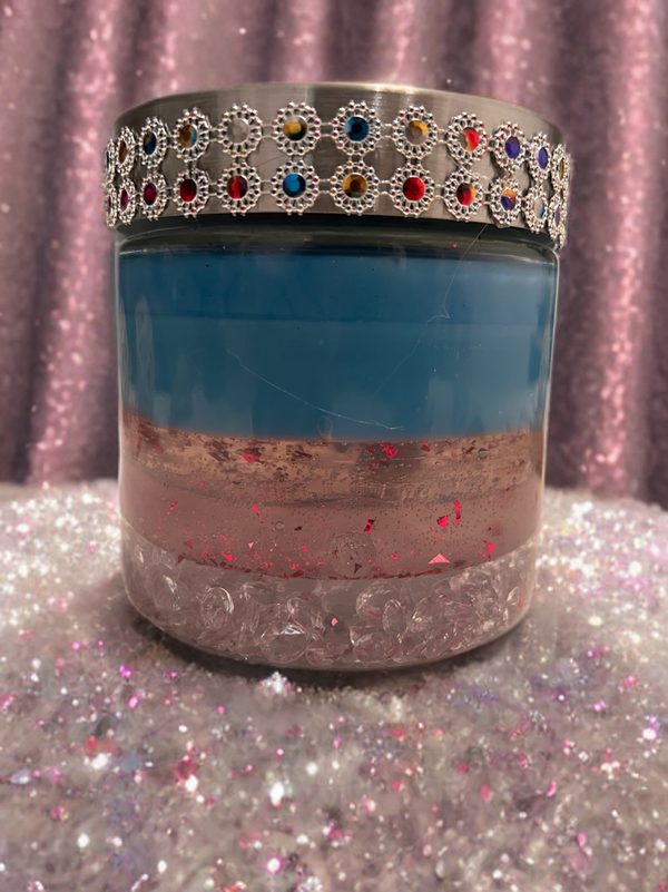 Triple Water Diamond candle is three layers and heavy . This candle is fully submerge in water , when shaken glitter floats through your the candle . This candle can be for keepsakes or burn. Please go to our video page to see our candles and this one when shaken .